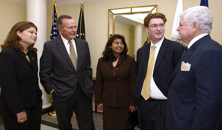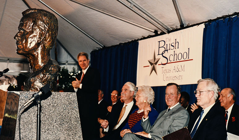 In their proposal to President Bush, Texas A&M officials devoted as many pages to describing a school of public service as to advancing their concept for a presidential library. In his letter choosing Texas A&M, President Bush mentioned the school as the first reason for accepting their offer. Since then, he has been a vigorous and active advocate engaging faculty and students in what he characterizes as the “noble calling” of public service. Undoubtedly, that notion of serving others—as much a part of the man as the school—will remain a distinguishing component of the Bush School’s DNA as its legacy continues.