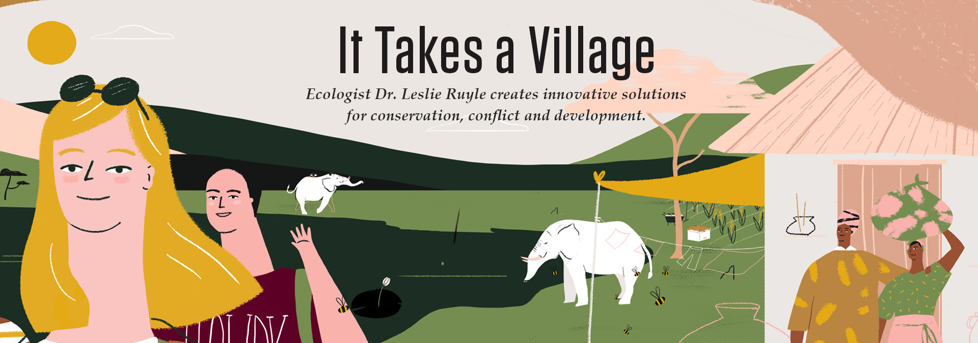 Luckily, that perception hasn’t held her back from making a huge impact on local populations in some of the world’s most conflict-afflicted areas. As an ecologist and assistant director of the Scowcroft Institute of International Affairs , housed in the Bush School of Government and Public Service , Ruyle studies the dynamics of conservation and development in areas facing environmental dilemmas, civil war or political unrest. Her work focuses on big questions: “How can conservation provide benefits to both humans and wildlife? How can development promote conservation and better lives for people? And how can we support entrepreneurship and economic development in regions of conflict and conservation concern?”