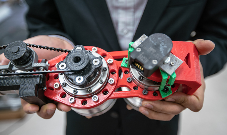 The SmartSuit, designed for exploration of the moon and Mars, incorporates soft robotics technology and gives astronauts better mobility and dexterity during extravehicular activities. The suit includes a stretchable self-healing skin that not only protects the wearer in the event of puncture, but also collects data through integrated sensors in its membrane, providing visual feedback to astronauts about their surroundings. These sensors also allow for enhanced interaction with the environment, permitting astronauts to actually “feel” rocks and terrain.