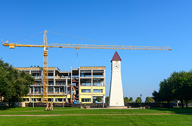 As an extension of the Aggie flagship, we are fully committed to answering the call of President Michael K. Young to make Texas A&M a national leader in recruiting and retaining the most diverse talent pool of students like Hinson, as well as faculty and staff. As part of the university’s Lead by Example campaign, we launched an initiative in early 2015 called “Wave of Change” to advance our institution in the face of unprecedented growth. Our first step was to build the new Texas A&M Maritime Academy Hall, a residential facility that opened in January 2016 to house our Corps of Cadets. Our second and most impactful step comes in the form of a three-phase Academic Complex under construction on the north side of campus.