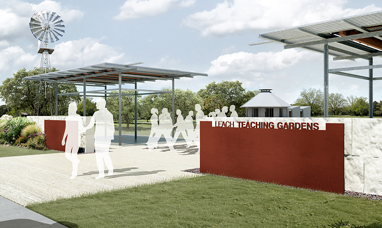 Named after lead donors Amy ’84 and Tim Leach ’82, the Leach Teaching Gardens represent Phase I of The Gardens project. When you enter this sanctuary, you’ll be greeted first by the colorful Edna Fuchs Memorial Rose Bed and the Leach Vineyard. To your left lies the Mexican Heritage Garden given by the Meta Alice Keith Bratten Foundation; to your right, German and Czech heritage gardens are dedicated to preserving cultures that have influenced Texas and our agricultural and horticultural traditions.