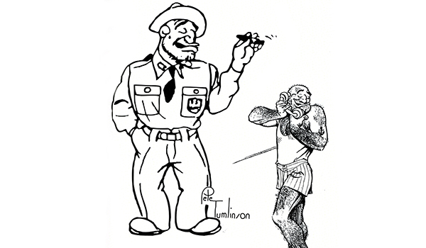 In the wake of Tumlinson’s passing, Pete’s brother, Richard “Dick” Tumlinson ’51, collected his archived sketches (including those seen here) into the dedicated book, “Magarkin: The Original Ol’ Sarge.”