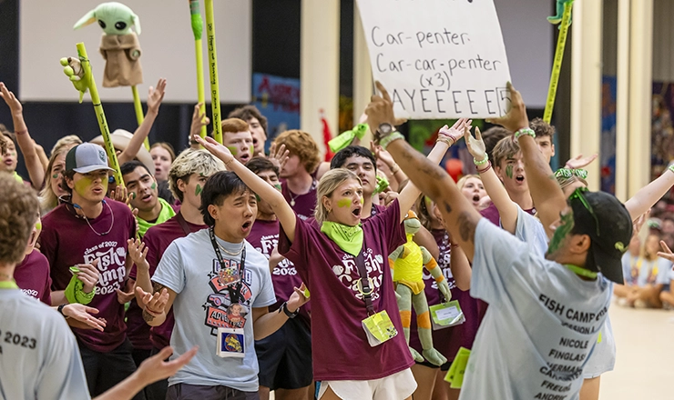 We had our own chants and spirit traditions, and our counselors went all in, covered in temporary tattoos and radiating excitement from the moment we stepped off the bus. Within each camp, we were divided again into smaller discussion groups, or DGs, made up of about eight freshmen with two DG leaders who served as our support system.