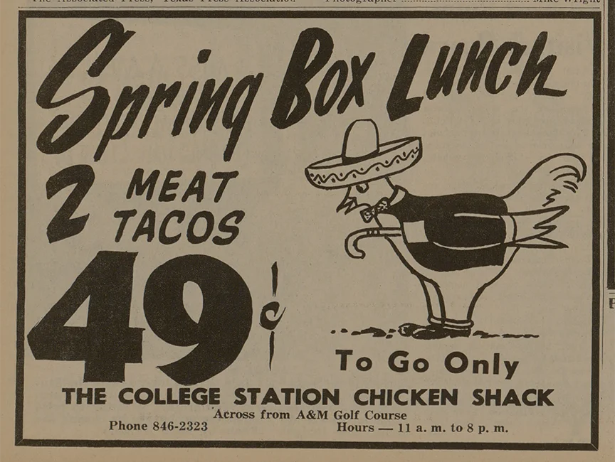 A newspaper ad for The Chicken Shack dated 1968. (Photo courtesy The Battalion)