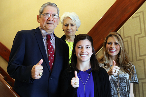 Margo and Bill Harrison '62 with their great-niece, Abby Mayfield '18 (center), and their first scholarship recipient, Katie Hohne '18 (right).