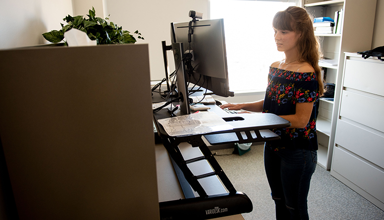 Benden readily concedes that spending the day in front of a computer isn’t a choice for many people—it’s a job requirement. He therefore considered a way that desks could encourage movement, rather than requiring people to leave their desks in order to move. Users of adjustable, stand-capable desks often forget to raise the desks in order to stand up, while those using immovable standing desks don't sit down. But by adding a footrest-equipped stool to the stationary desk to create a "stand-biased" desk, Benden said, users stand more, move more and burn more calories.