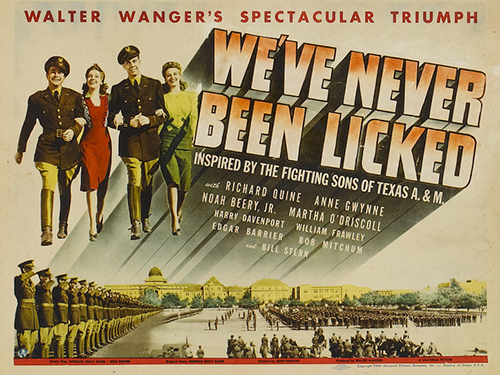 "We've Never Been Licked" was a 1943 World War II film that was partly shot on location at the Texas A&M campus.
