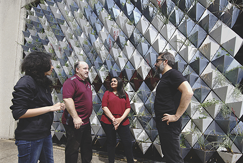 Crafted from galvanized sheet metal, the wall reduces heat consumption while demonstrating a sustainable, long-lasting and economical design. “This is the first living green wall made from sheet metal scrap generated from the automotive industry,” Ali said. “Our students cut the metal using a computer-controlled water jet, formed wall system units and assembled them with aluminum rivets, increasing their knowledge of design using unconventional materials.”