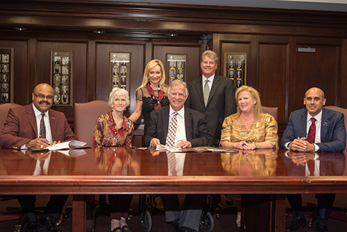 The School of Law joined the Texas A&M family in 2013 and has skyrocketed in rank and reputation in the time since—recently jumping an unprecedented 23 points to a No. 60 ranking in the U.S. News & World Report’s listing of the nation’s top law schools. Given the school’s relative youth and small number of Aggie graduates, some of its most significant campaign gifts have come from non-law graduates. Two recent gifts are exemplary: $250,000 commitments from Jon Hagler ’58 and Avi and Debra Naider. Hagler’s gift created the Hagler Law Symposium Fund, which will be used to host policy-oriented conversations on critical social and economic challenges facing our state and the nation. Avi Naider, a Princeton University graduate and long-time friend to Bobby Ahdieh, dean of the law school, created a scholarship endowment in Ahdieh’s honor that will support law students who offer extraordinary service or support to a classmate or participate in one of the school’s 10 community legal service clinics.