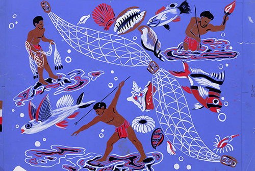 John “Keoni” Meigs, painting for Waikiki Reef, c. late 1940s; gouache on paper, 24 x 30 inches; © Keoni Collection.