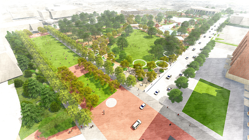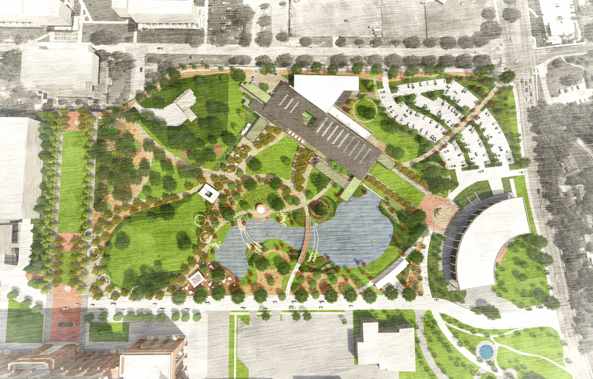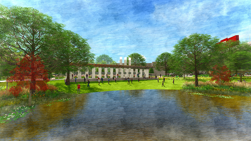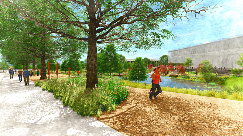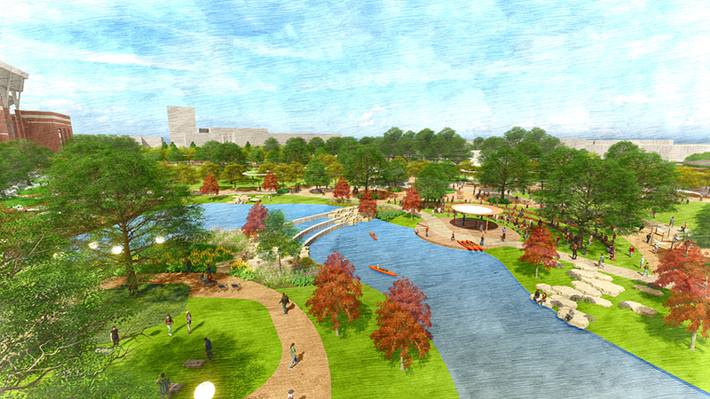 Various features in the park will pay tribute to the university’s history and achievements, including a standing structure that will honor Texas A&M’s distinguished alumni as well as a plaza recognizing university presidents. The park will also incorporate a new facility in its second phase that will provide a larger home for Aggie Ring Day and host other events.