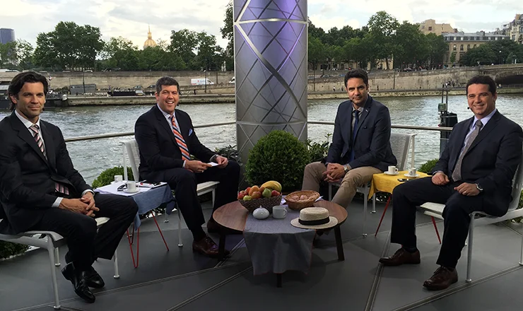 As an ESPN broadcaster for 25 years, Fernando Palomo ’95 has covered five Olympic Games, five World Cup finals, 12 UEFA Champions League finals, three European Championships and thousands of soccer games across multiple leagues around the globe. Photos provided by Fernando Palomo ’95.