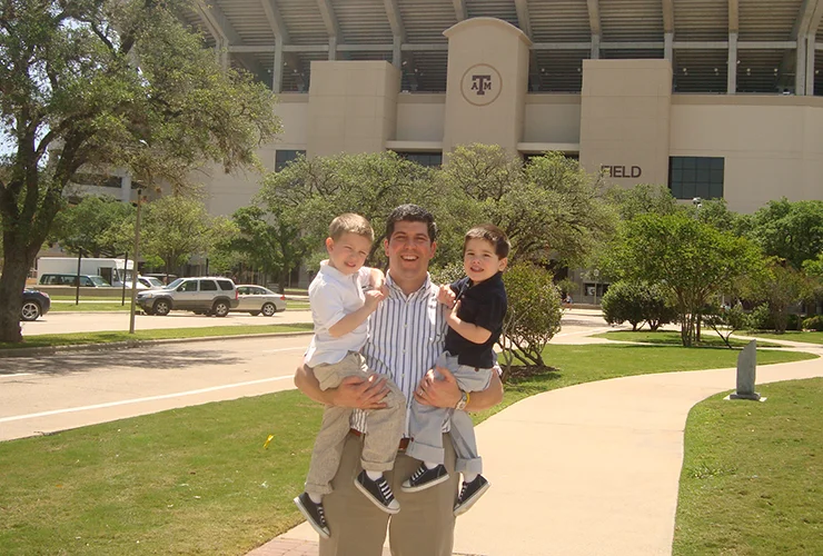 Fernando Palomo ’95 visits Aggieland with his sons Juan Marcos ’27 and Matias ’28 when they were children.