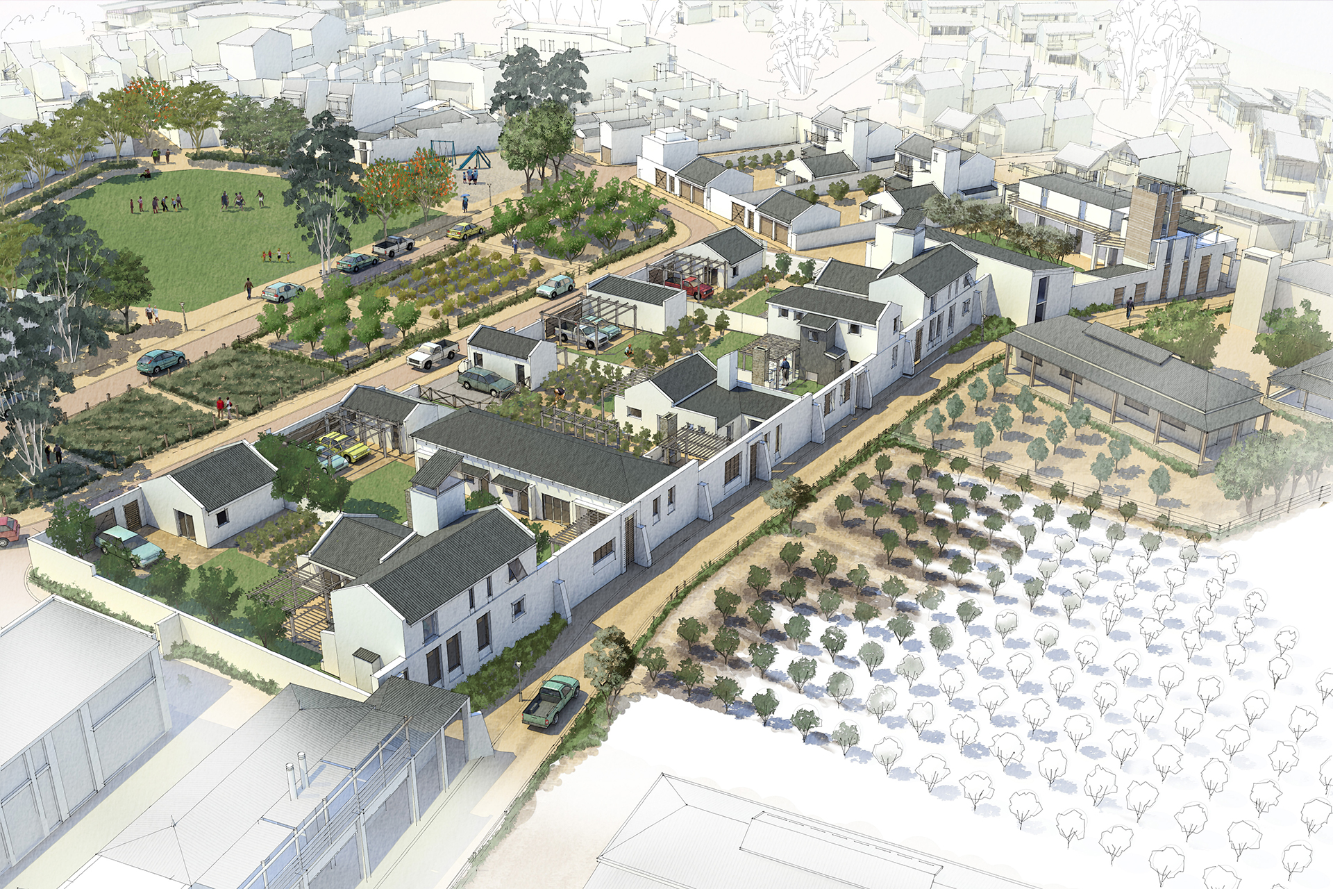 Mulder’s latest project under this vision is Crossways Farm Village, South Africa’s first New Rural village. Located on a 1,285-acre dairy farm, the village is based on a design model in which neighborhoods radiate from a village center of shops, restaurants and support services.