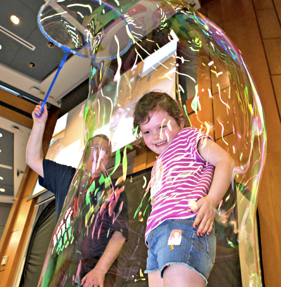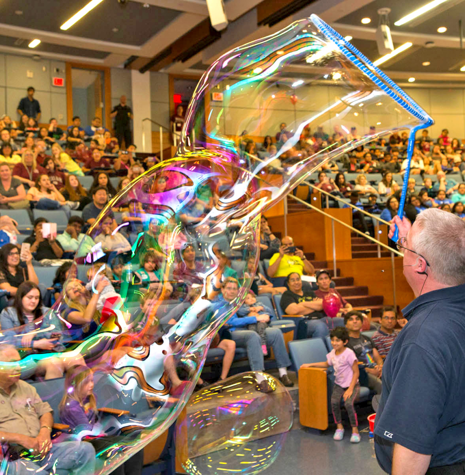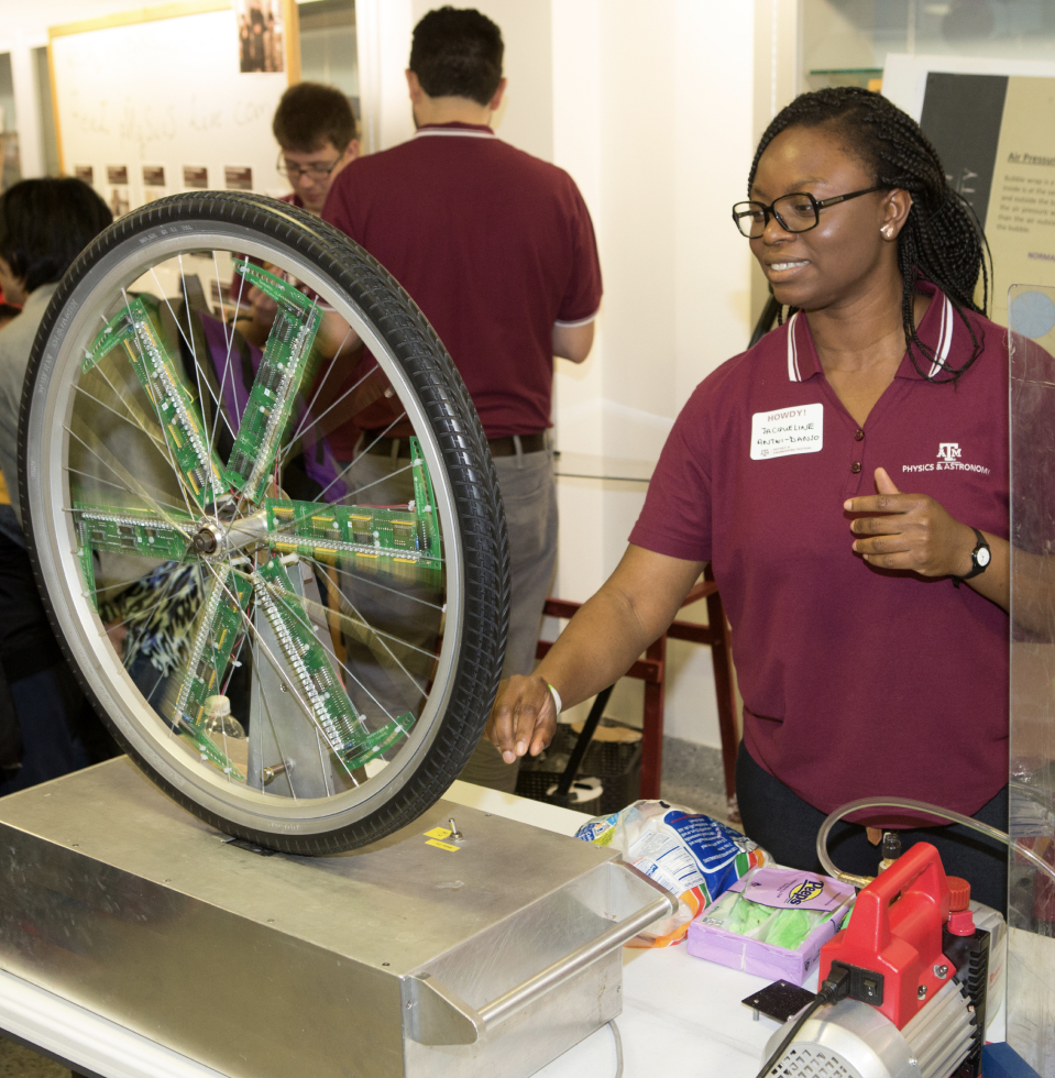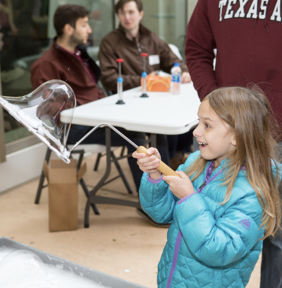 Ever wonder what it would be like if gravity wasn’t dragging you down? Students’ pursuit to answer this question inspired the creation of the Superconducting Levitation demo. Using superconductors cooled to the liquid nitrogen temperature and a magnetic track, the demo exhibits a train that floats above the track due to electric currents circulating in a superconductor. “What seems like a complicated process turns out to be a simple feat of physics,” said Callie Rethman ’20, one of the student demonstrators.
