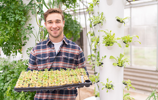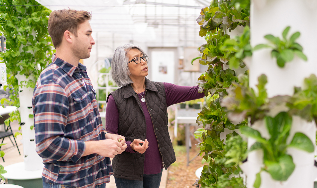 A new program supported by the School of Public Health is helping feed Aggie students and staff in need. With the assistance of a $60,000 grant from the Aggie Green Fund and a greenhouse from the Department of Plant Pathology and Microbiology, TAMU Urban Farm United (TUFU) is growing 600 produce crops in vertical tower gardens to aid the 12th Can, an on-campus food pantry, as well as Meals for Veterans, a program focused on feeding young veterans. The initiative was started by cofounder Broch Saxton ’19, a recent plant and environmental soil science graduate; plant breeding master’s student Stephon Warren ’17; and cofounder Lisette Templin ’88, an instructional assistant professor in the Department of Health and Kinesiology.