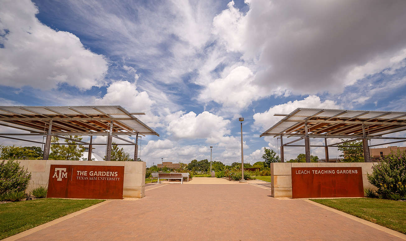 The Gardens at Texas A&M University is a planned transformation of 27 acres on West Campus into a public teaching garden. The first 7 acres, the Leach Teaching Gardens, opened in 2018 and feature 21 themed sections as well as a climate-controlled pavilion. Designs for the remaining 20 acres are underway and will include rose gardens, a family/children’s garden, educational and event venues, and a re-creation of The Grove, an outdoor amphitheater originally located on main campus for concerts, movies and events.