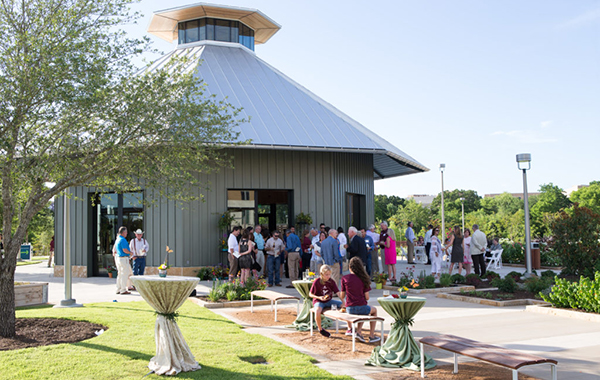 Whether you want to host an intimate dinner or a large event, The Gardens offer a variety of spaces to suit your needs. The pavilion features a climate-controlled, panoramic view of the surrounding flora and fauna, while the event lawn boasts Kyle Field as the perfect backdrop for larger events.