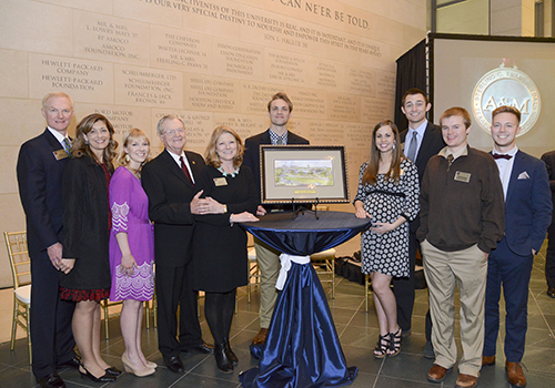 I will always be thankful for the board’s decision to give this gift. To be connected with Bob is also a great honor, and a “thank you” is wholly inadequate to express my gratitude. This gift also carries special significance to my family, as my wife Daisy grew up in College Station and fondly remembers watching the band perform as a young child. Indeed, our family has always treasured Texas A&M’s musical groups.
